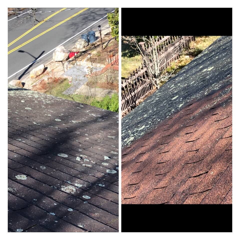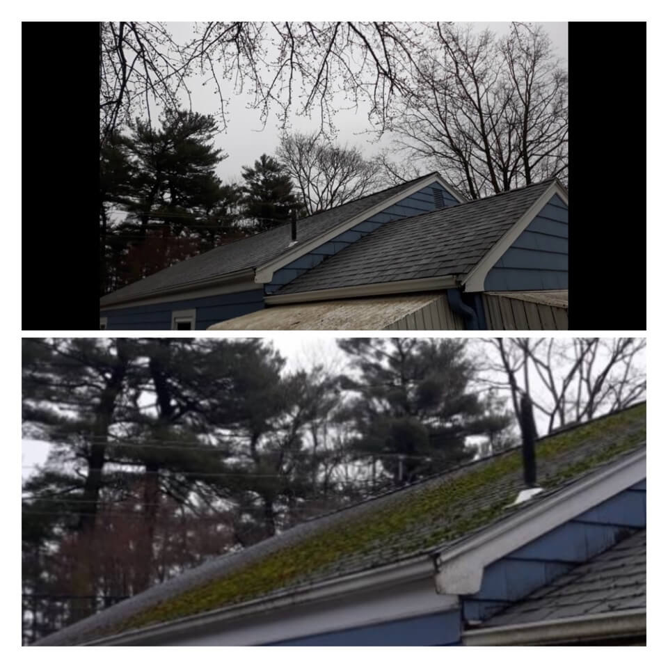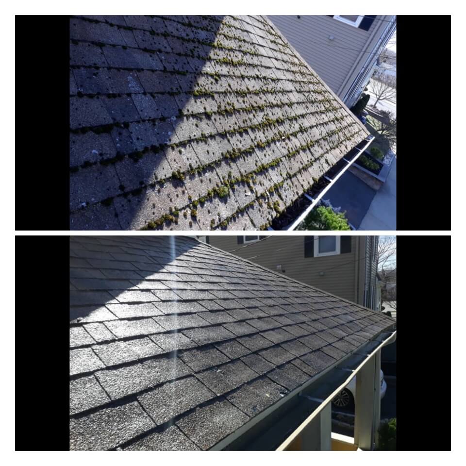 HiCleaners is the most experienced company in Watertown, MA that deals with roof washing and roof soft washing. All of our employees are trained to recognize precise solution mixing ratios to provide you with the safest and most effective soft washing service. Roofs are a commonly neglected part of a house due to the fact that most people don’t have ladders to access it, so it is very easy to just leave it alone and forget about problems that may start to arise. Just like many home owners, discoloration and small bits of moss on a roof can be overlooked because of the misconception that it is just aesthetic. However, it isn’t just aesthetic, the moss slowly lifts the granules off the shingles which in turn shorten the life of the shingle. The moss also spreads, just like any bacteria if it is left alone for too long, it can quickly become a problem that spirals out of control. Call HiCleaners for a free quote, we only use the most advanced eco-friendly solutions and equipment to make sure the job is done right, for the safety of the employees, your plants, grass, pets, and children.