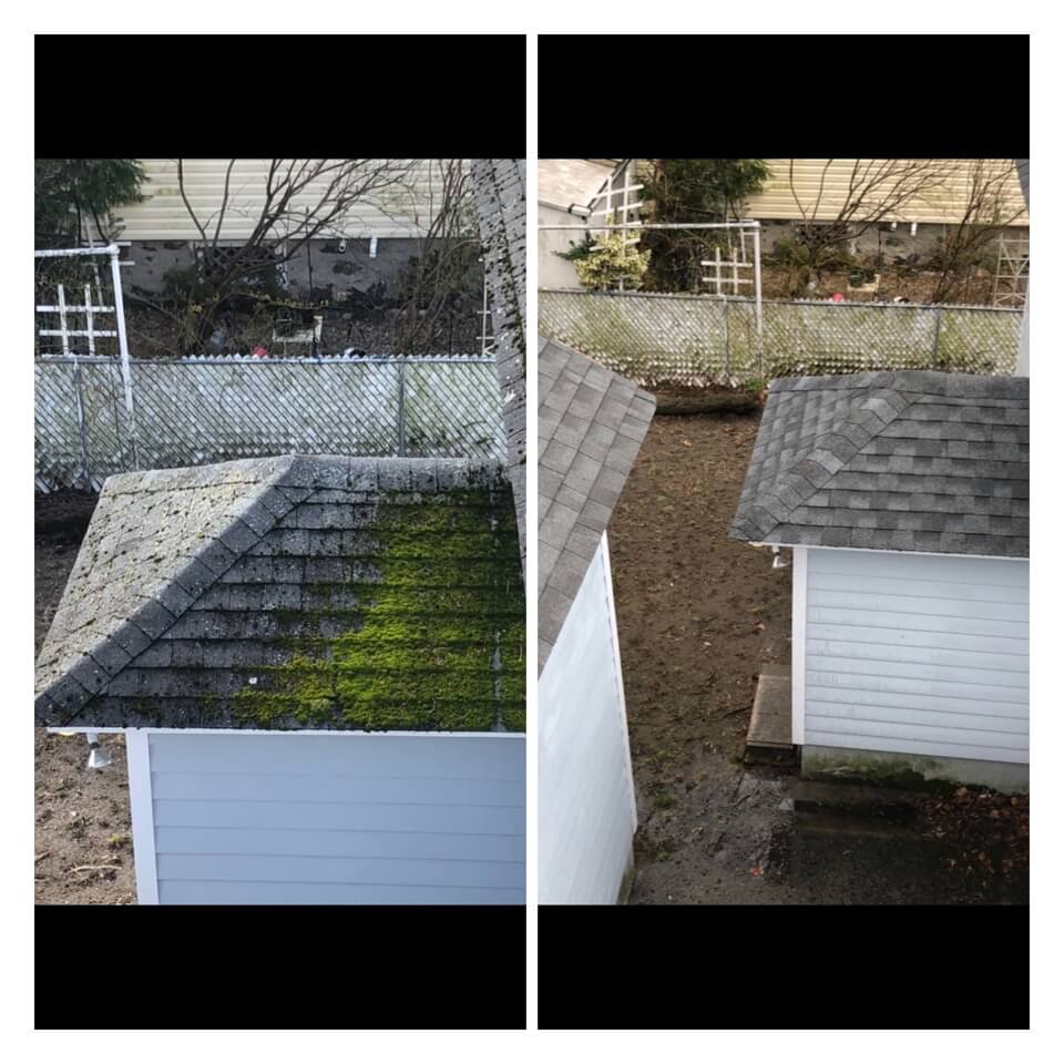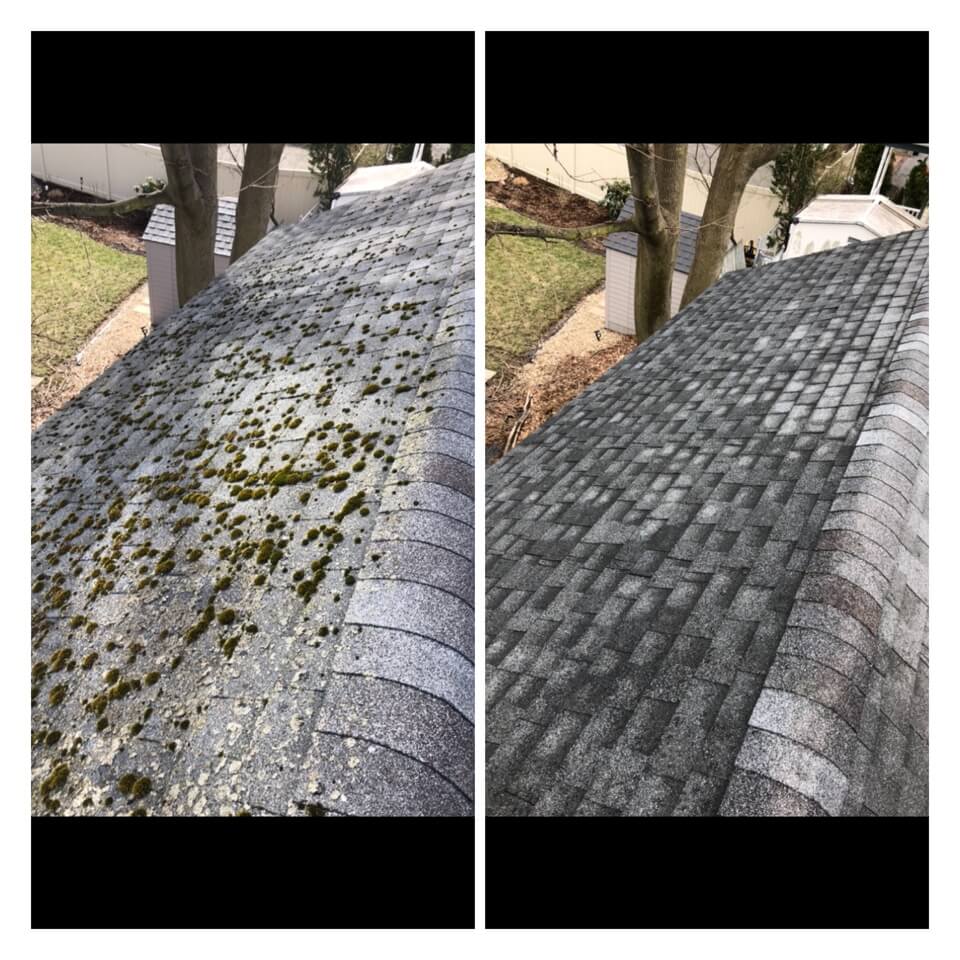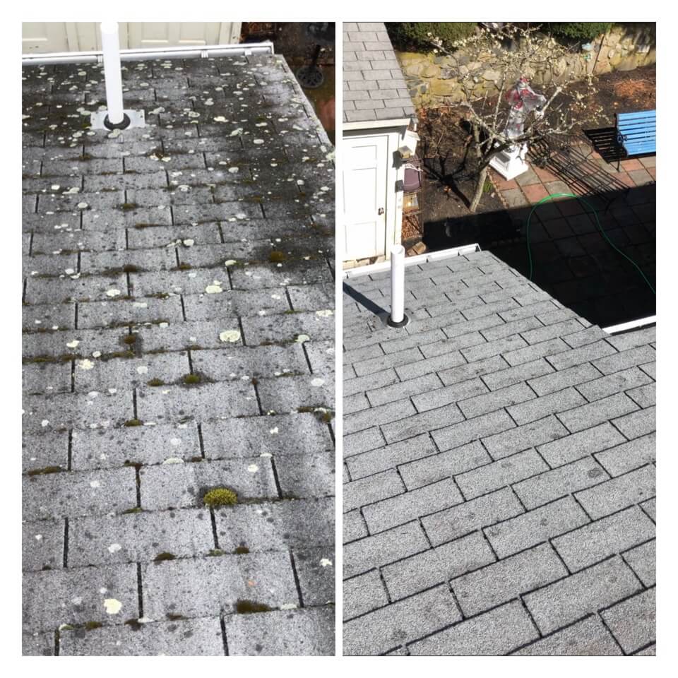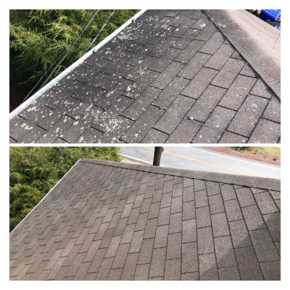 HiCleaners is the most experienced company in Watertown, MA that deals with roof washing and roof soft washing. All of our employees are trained to recognize precise solution mixing ratios to provide you with the safest and most effective soft washing service. Roofs are a commonly neglected part of a house due to the fact that most people don’t have ladders to access it, so it is very easy to just leave it alone and forget about problems that may start to arise. Just like many home owners, discoloration and small bits of moss on a roof can be overlooked because of the misconception that it is just aesthetic. However, it isn’t just aesthetic, the moss slowly lifts the granules off the shingles which in turn shorten the life of the shingle. The moss also spreads, just like any bacteria if it is left alone for too long, it can quickly become a problem that spirals out of control. Call HiCleaners for a free quote, we only use the most advanced eco-friendly solutions and equipment to make sure the job is done right, for the safety of the employees, your plants, grass, pets, and children.